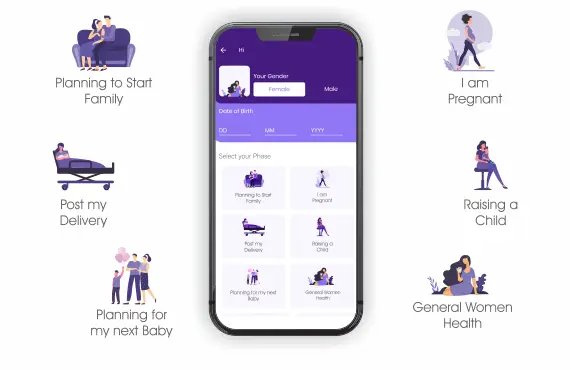 - Stage-specific (fertility, pregnancy, post-delivery, raising a child, planning for second baby and general women health) health tips.